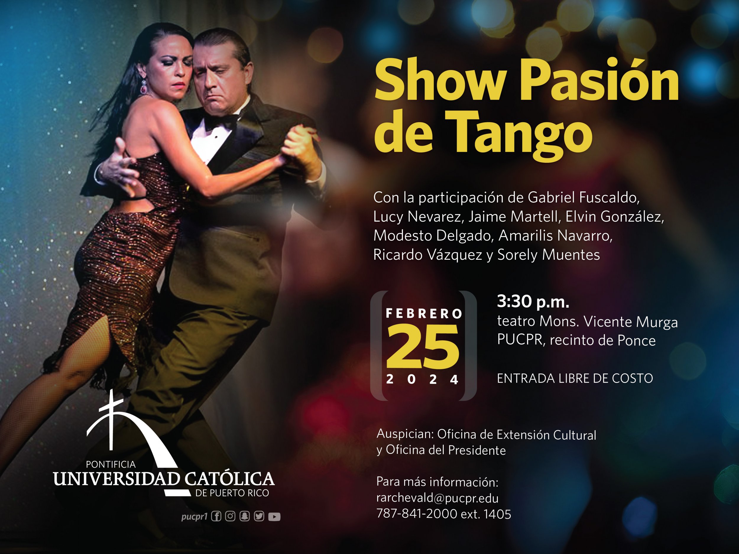 Show pasión de tango By celimer_torres@pucpr.edu | February 1, 2024 ¡Te invitamos a una velada diferente! Posted in General ← La Católica y la Fundación Yuste en España pactan acuerdo colaborativo¡Hacen historia los abanderados Pioneros! →