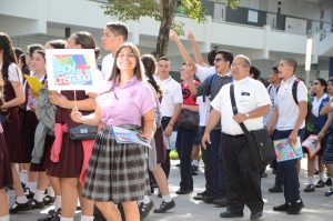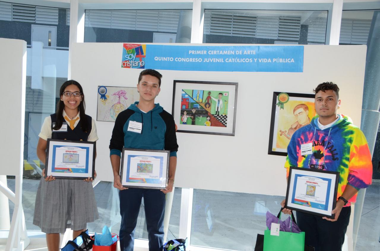 Soleil Pérez Alvarado de la Academia Cristo Rey, Derek Altori y Adrián Rodríguez, del Colegio La Milagrosa fueron escogidos como el primer, segundo y tercer lugar del Certamen de Arte 2017 bajo el tema: Mi misión como joven cristiano en la sociedad actual.