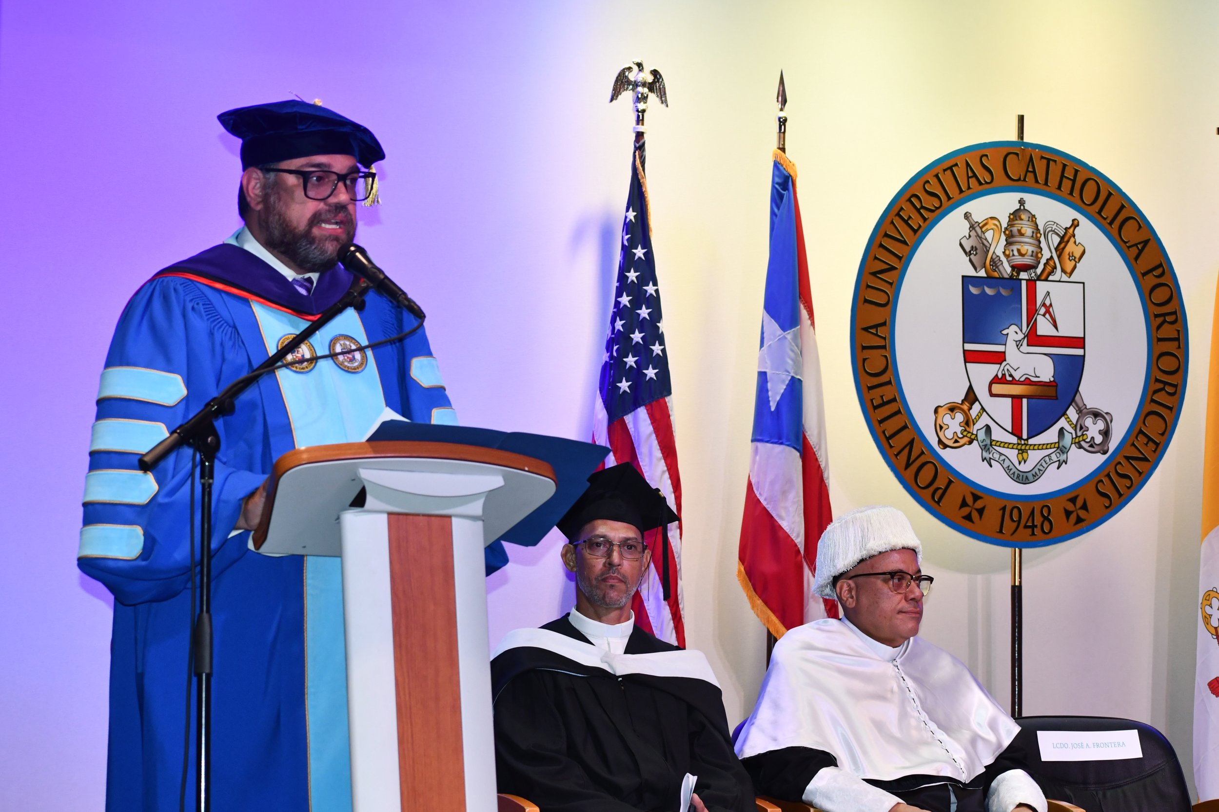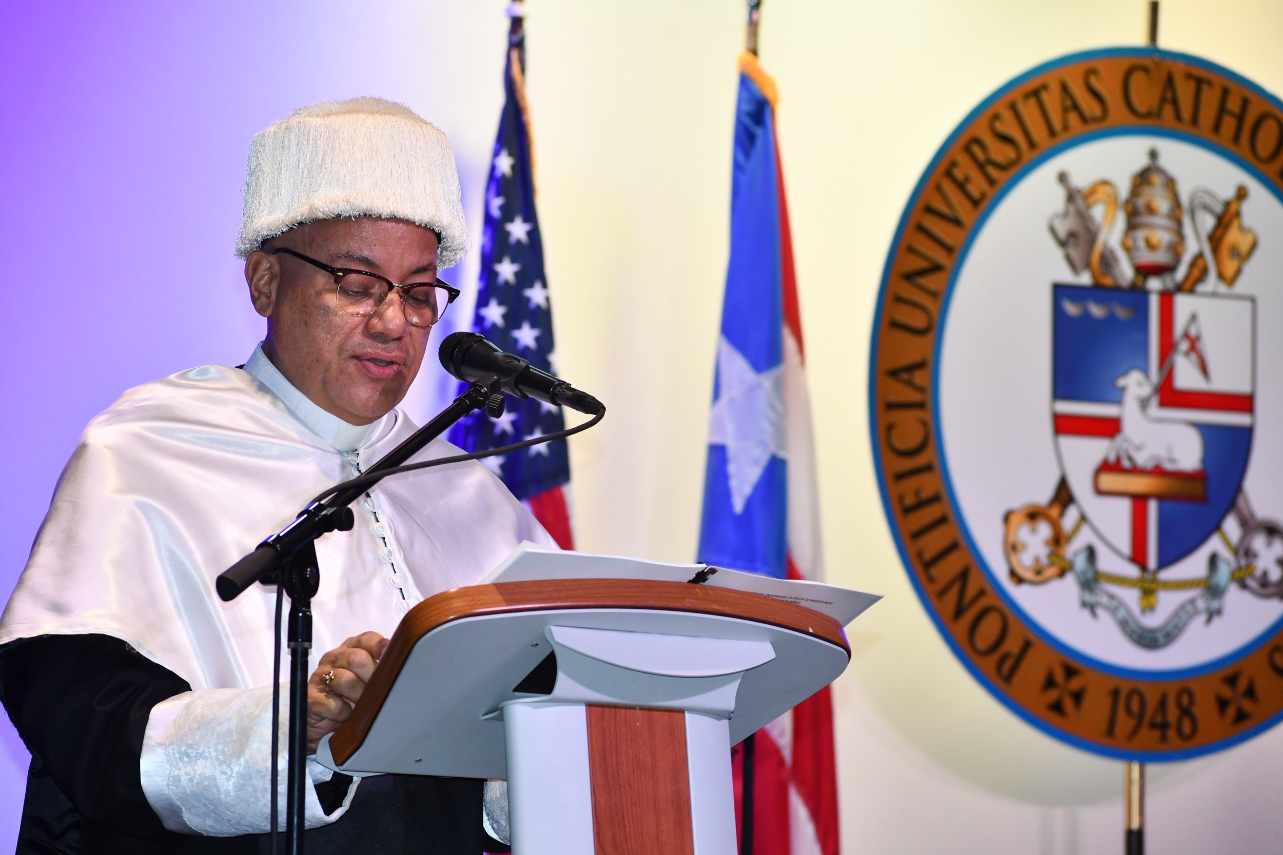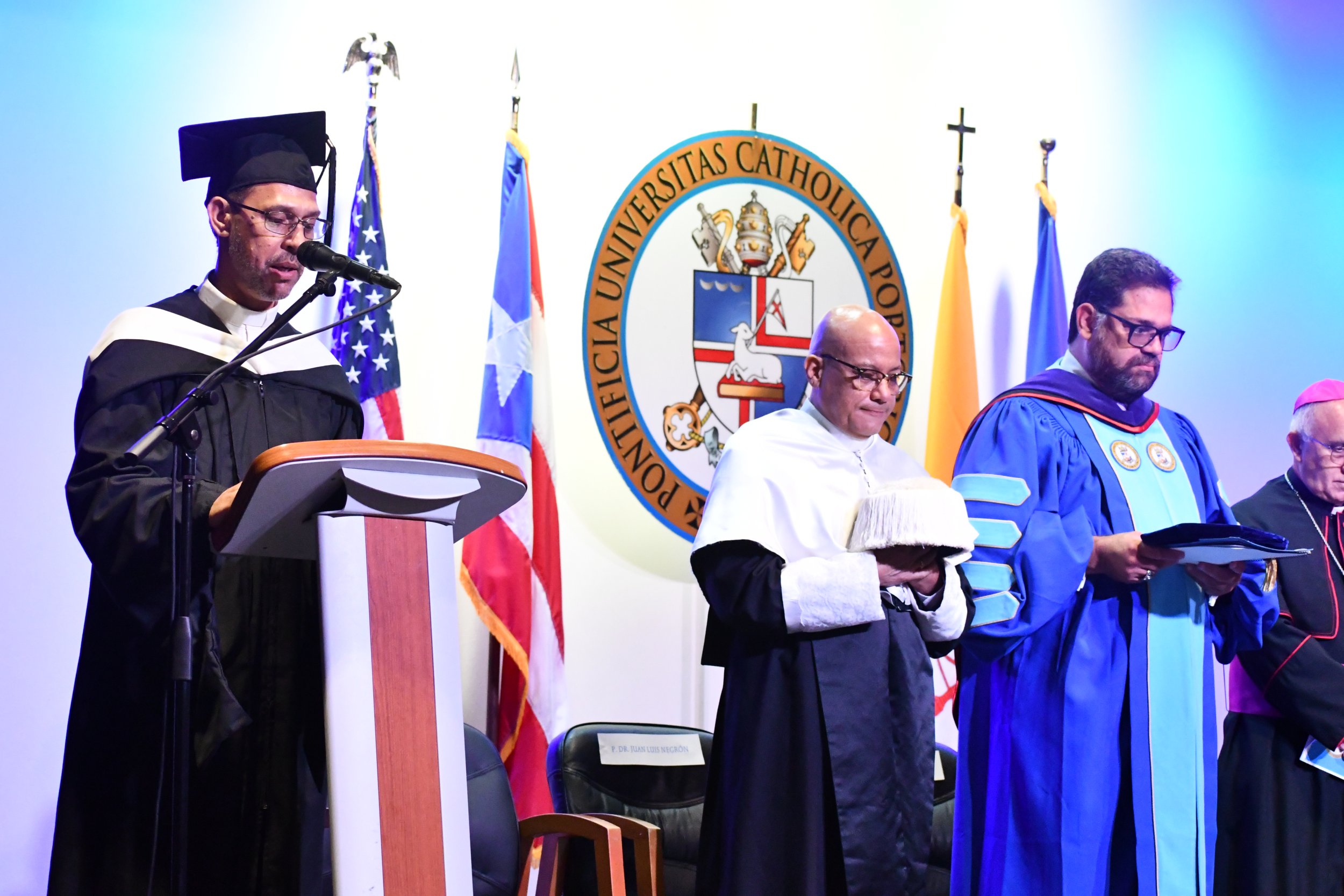 La Pontificia Universidad Católica de Puerto Rico otorgó hoy el doctorado honoris causa al P. Jorge Ferrer Negrón, quien falleció el pasado 21 de septiembre debido a un percance de salud. El acto académico de recordación se llevó a cabo en el teatro Mons. Vicente del recinto de Ponce con facultativos y personal de la comunidad universitaria.
