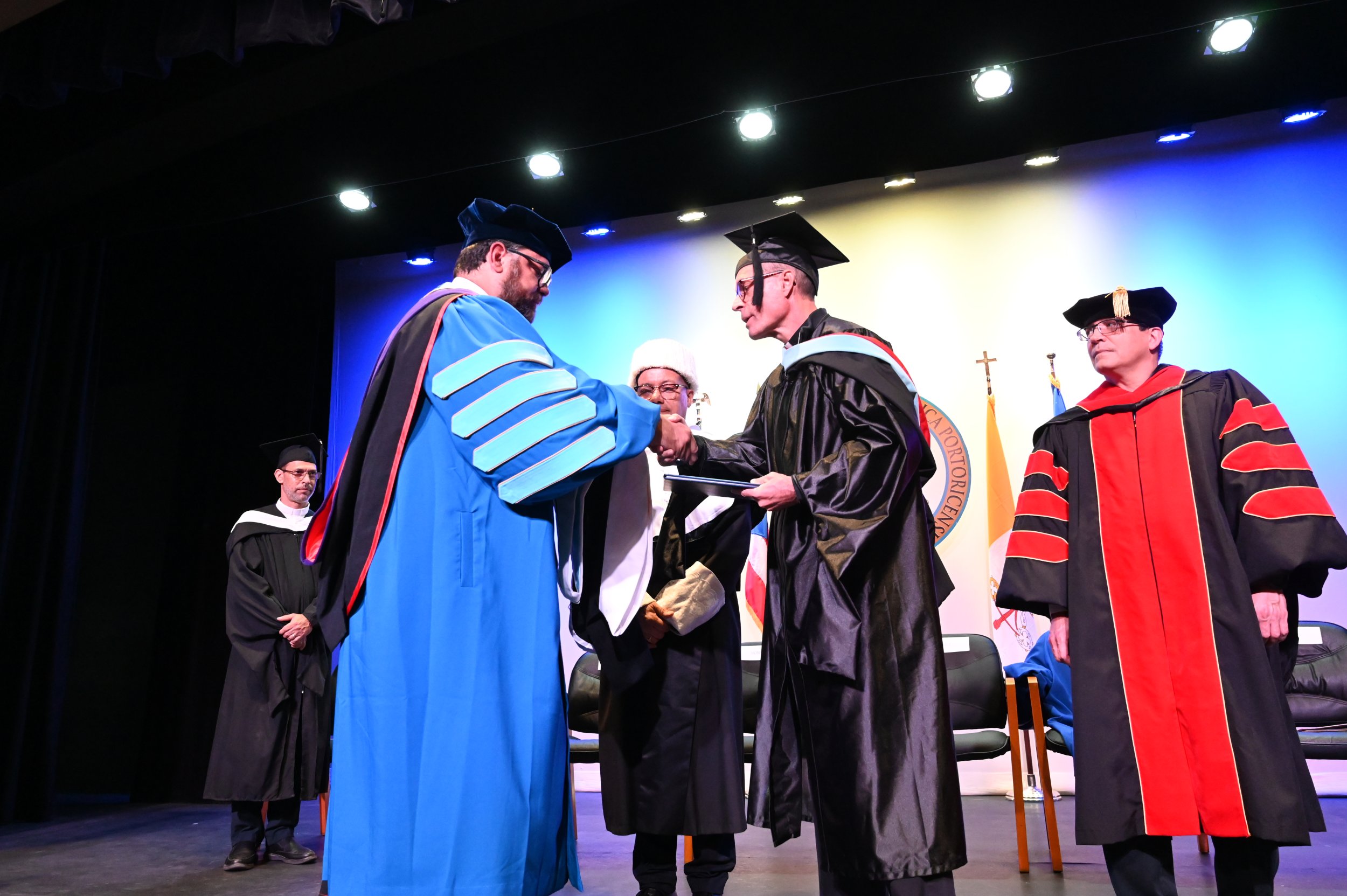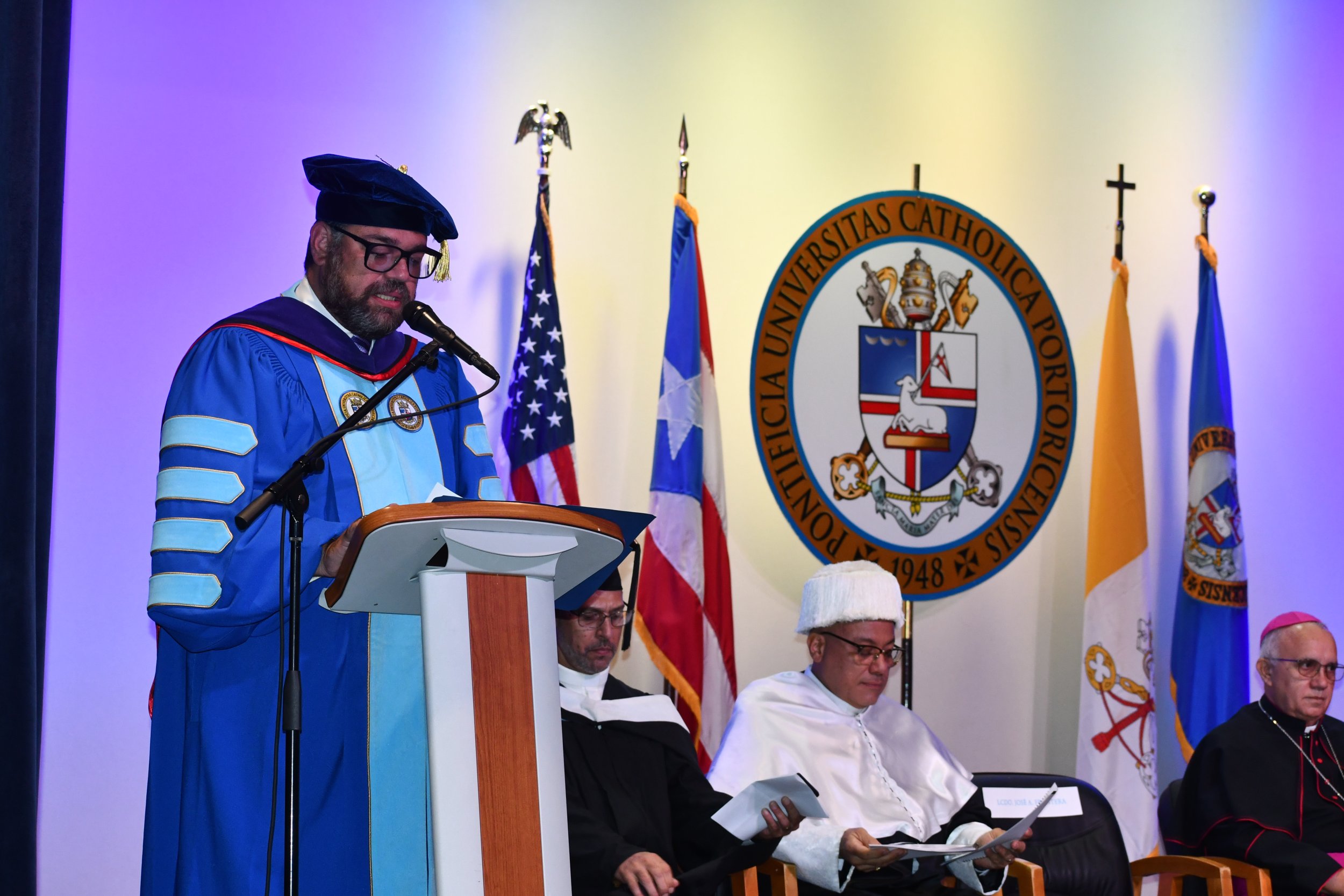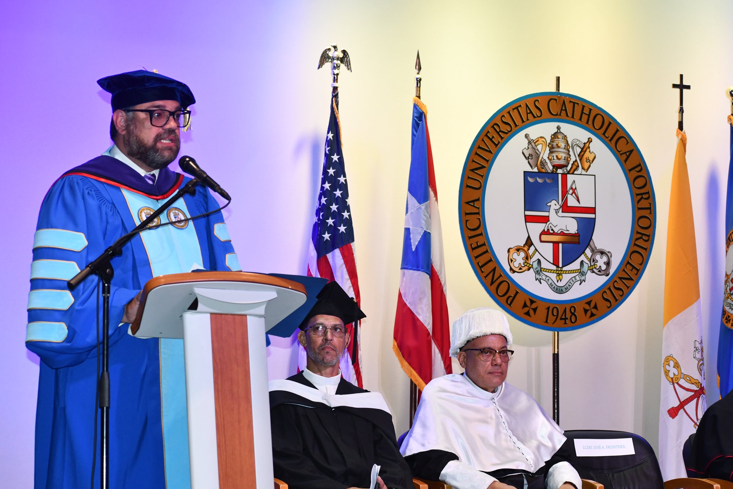 La Pontificia Universidad Católica de Puerto Rico otorgó hoy el doctorado honoris causa al P. Jorge Ferrer Negrón, quien falleció el pasado 21 de septiembre debido a un percance de salud. El acto académico de recordación se llevó a cabo en el teatro Mons. Vicente del recinto de Ponce con facultativos y personal de la comunidad universitaria.