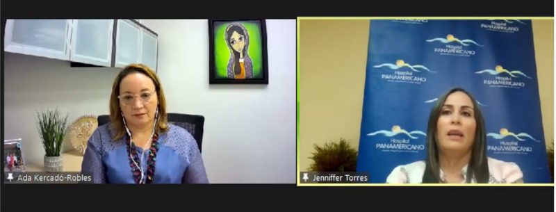 El conversatorio tuvo como ponentes a la Dra. Ada I. Kercadó Robles, psicóloga clínica y directora de la Clínica Interdisciplinaria de Servicios a la Comunidad de la PUCPR y a Jennifer Torres Vélez, Chief Operation Officer en el Hospital Panamericano.