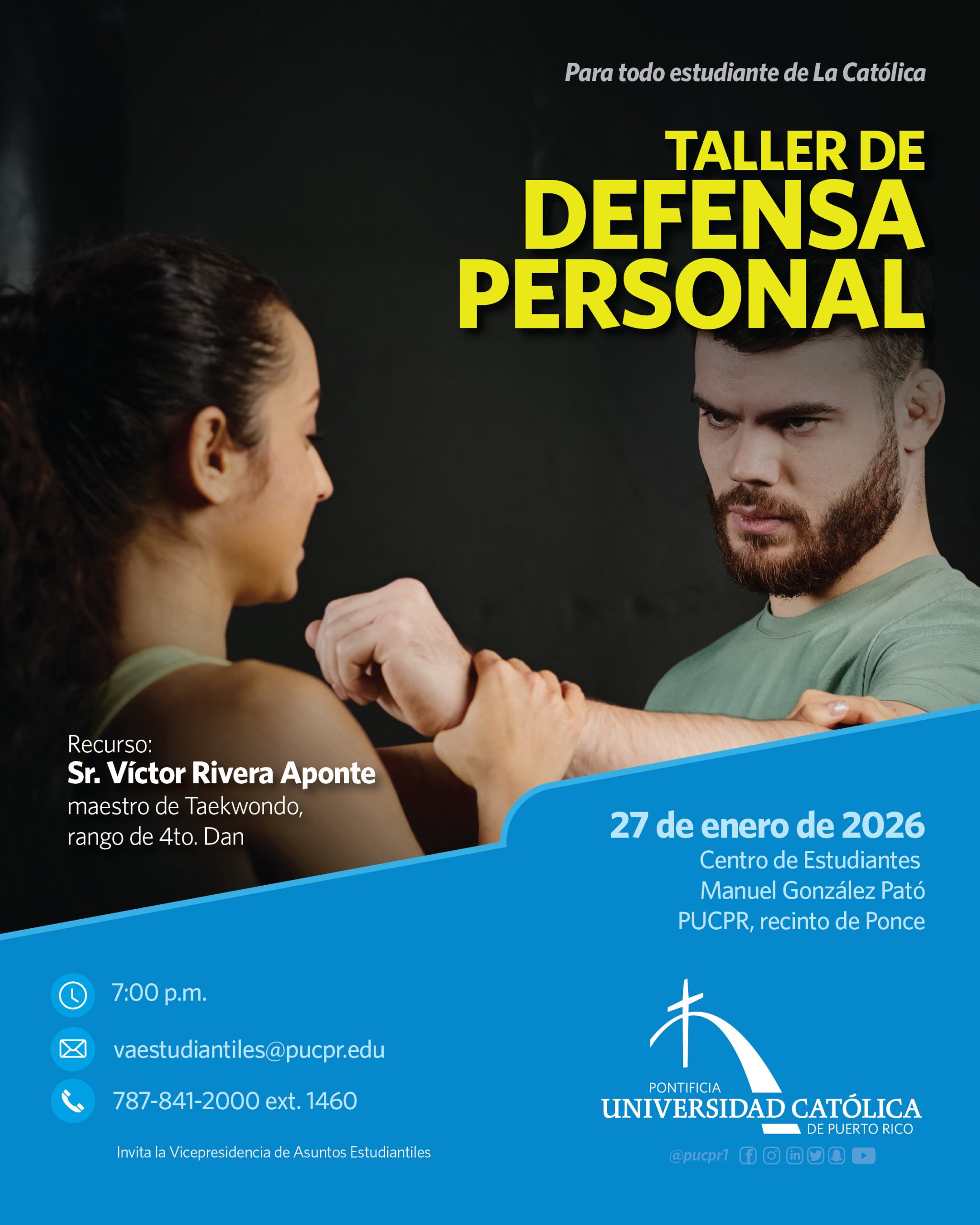 Taller de Defensa Personal By celimer_torres@pucpr.edu | January 15, 2026 Herramientas prácticas y estrategias de prevención para tu seguridad Posted in General ← ¿Estás listo para ser parte de la Fiebre Pionera?Más de dos décadas sirviendo a la comunidad →