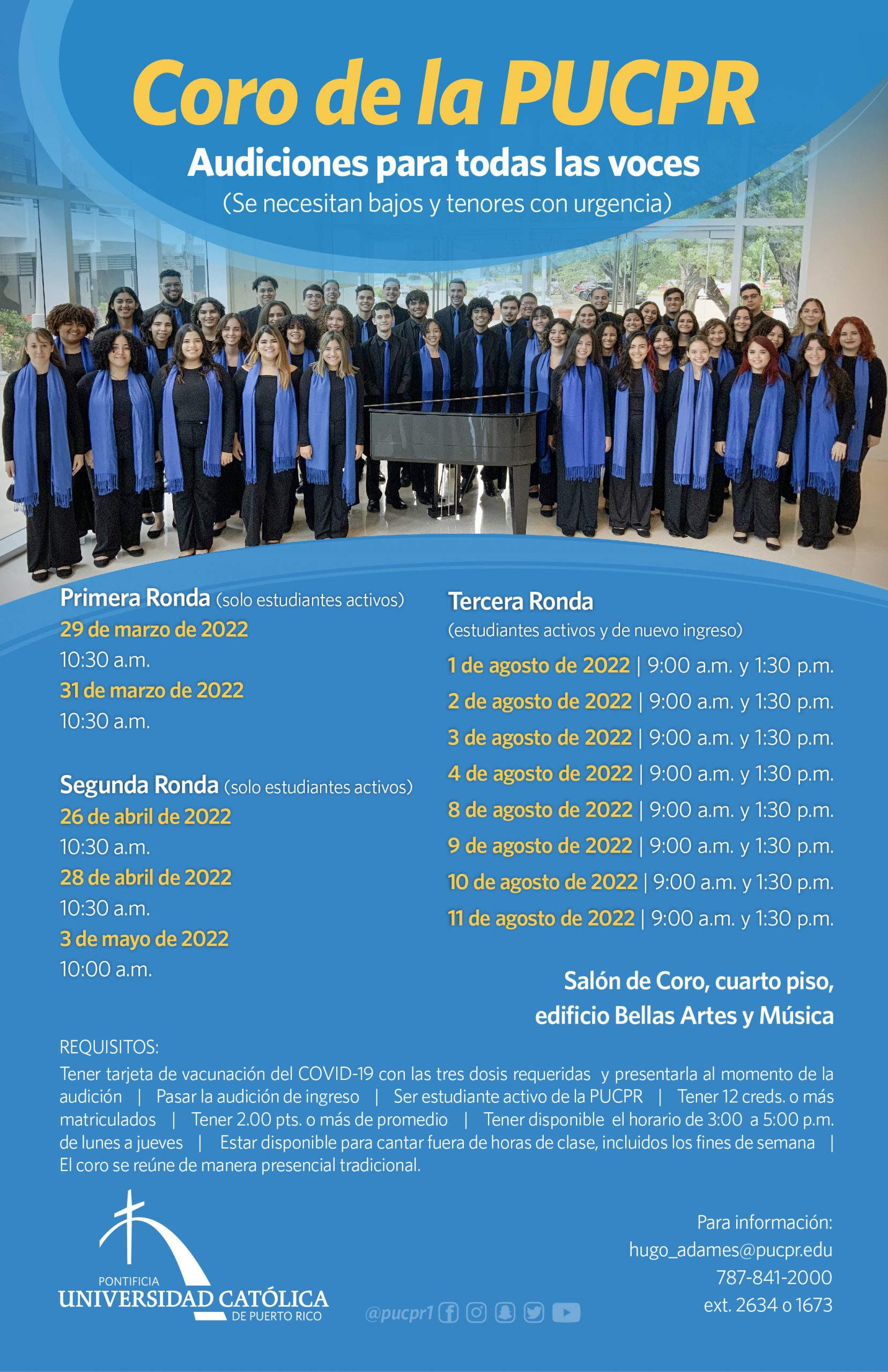 ¡Llegó tu momento de audicionar y formar parte del Coro de la PUCPR!
