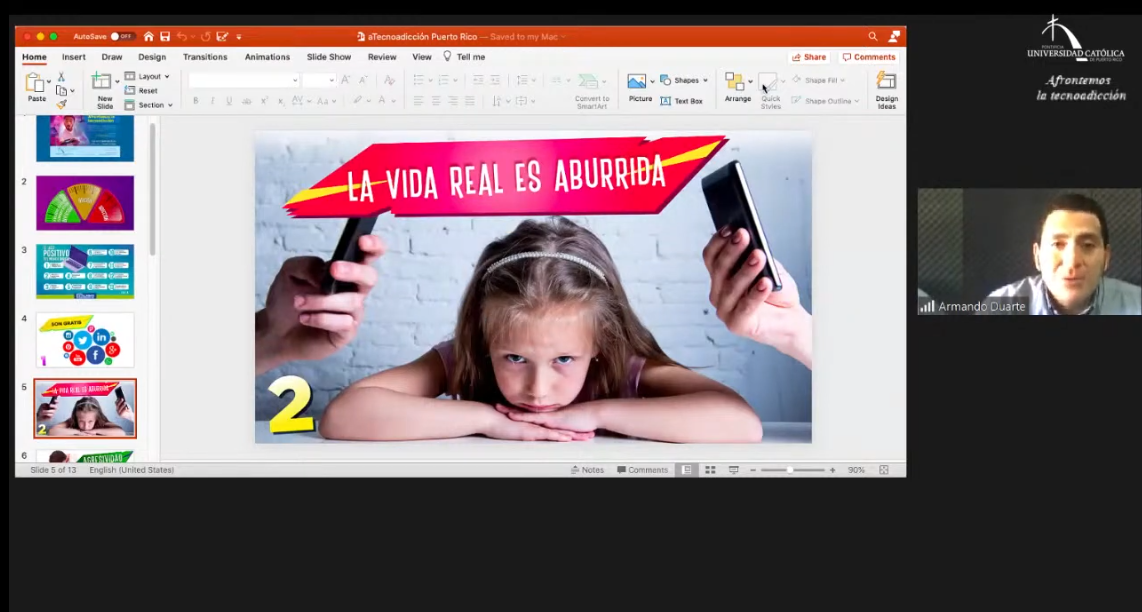 El Dr. Armando Duarte, investigador y licenciado en Ciencias de la Familia, expuso sobre este tema durante el conversatorio Afrontando la tecnoadicción. El evento virtual fue organizado por el Instituto de Matrimonio y Familia de la PUCPR el jueves 1 de octubre de 2020.