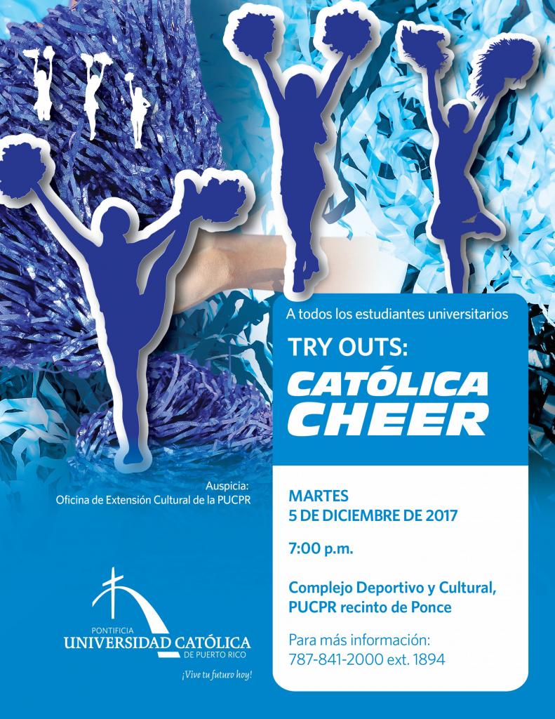 Tryouts Equipo de Porrismo By celimer_torres@pucpr.edu | November 30, 2017 Posted in General ← Concierto del Coro de la PUCPR “Cualquier Pueblo Renace”Expertos alzan sus voces para educar sobre la reconstrucción de la Isla desde la transparencia →
