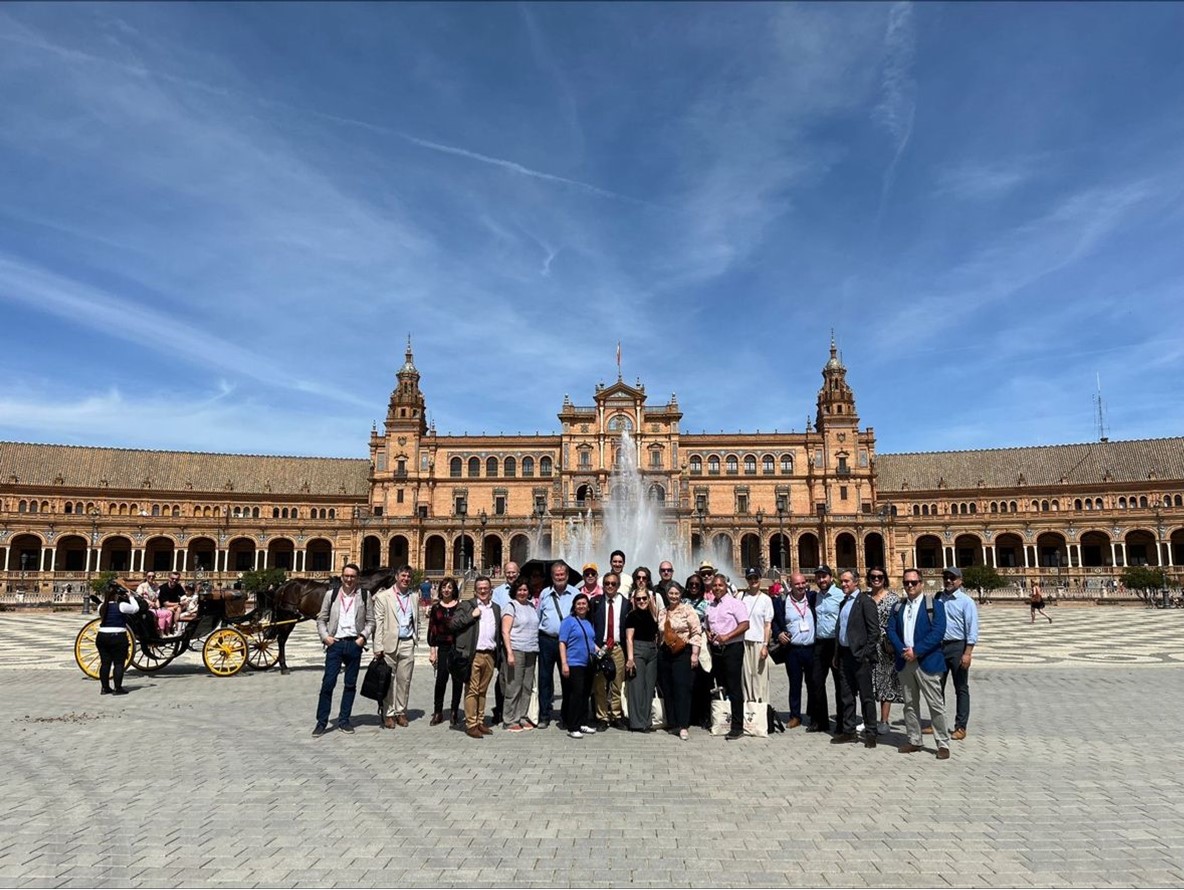 ¡Qué gran ciudad y qué amable acogida por parte de los representantes de la Universidad de Sevilla (US) y las universidades de la región que se dieron cita para el “networking”! En esta ocasión, los representantes de HACU fueron recibidos por el Dr. Julián Martínez Fernández, vicerrector de Investigación de US; y el Dr. Manuel Jesús Soto Prieto, director de Movilidad, quienes enfocaron su presentación en las experiencias de investigación de su universidad. En esta institución se tuvo la oportunidad de conocer colegas de instituciones universitarias a las que nuestros estudiantes visitan para estudiar por un semestre, así como de universidades interesadas en iniciar el intercambio académico. De igual forma, compartieron informaciones sobre los programas de corta duración, principalmente desarrollados en periodo de verano y con temas que van desde el aprendizaje del idioma español hasta la industria del aceite de oliva, tan relevante en la gastronomía internacional. Algunas de las universidades españolas que se dieron cita fueron la Universidad de Granada, la Universidad de Jaén, Universidad de Cádiz y la Universidad Miguel Hernández de Elche. En la tarde, los visitantes disfrutaron de un recorrido histórico y cultural por la ciudad de Sevilla.