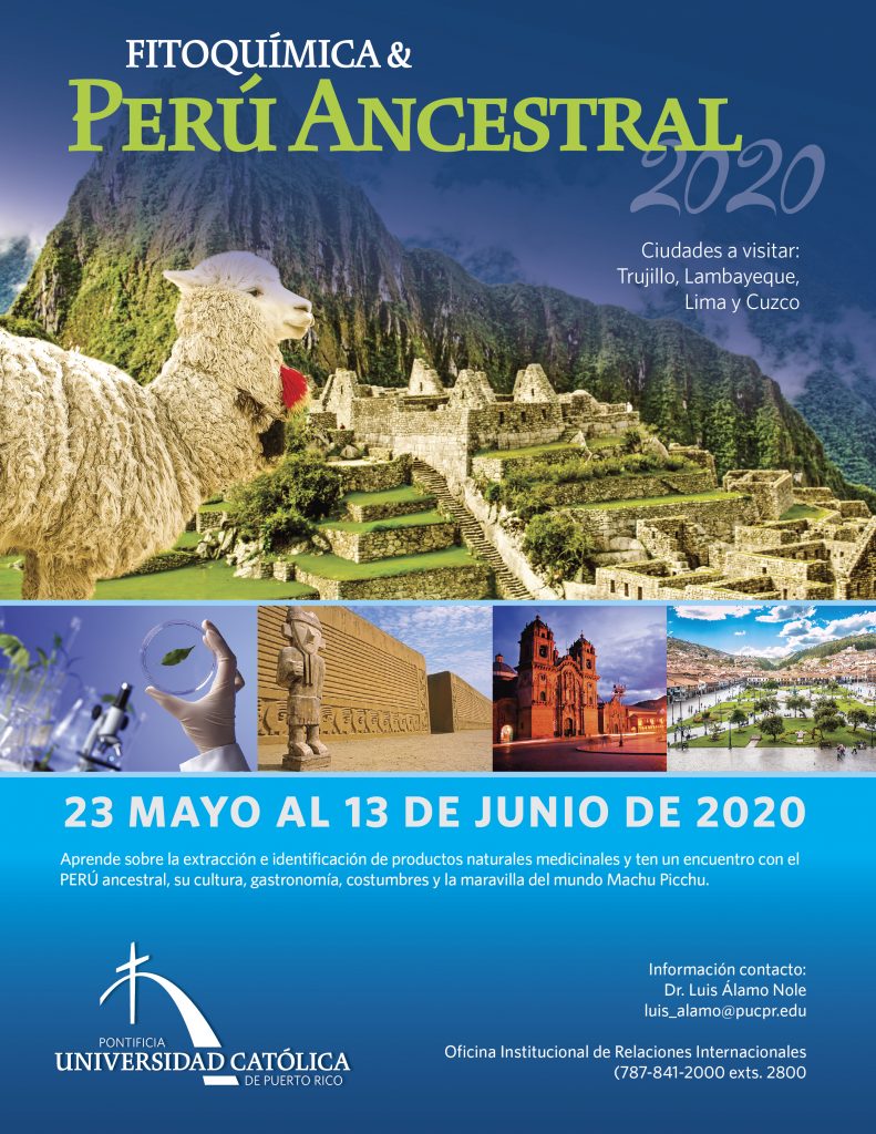 ¡Vamos para Perú! By celimer_torres@pucpr.edu | September 26, 2019 Aprende sobre extracción e identificación de productos naturales medicinales. Posted in General ← Música latinoamericana para la guitarraEn acción ante la crisis climática →