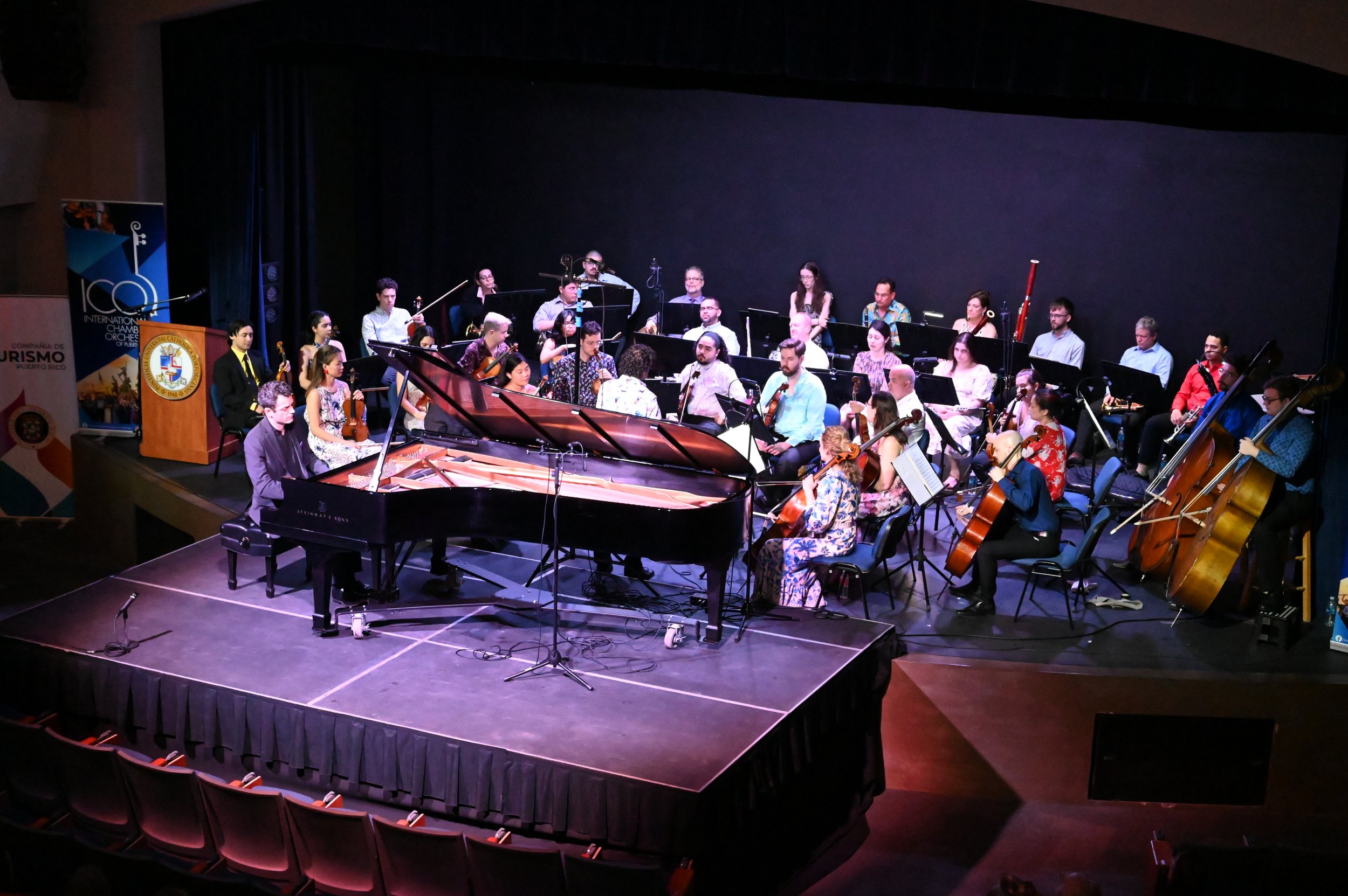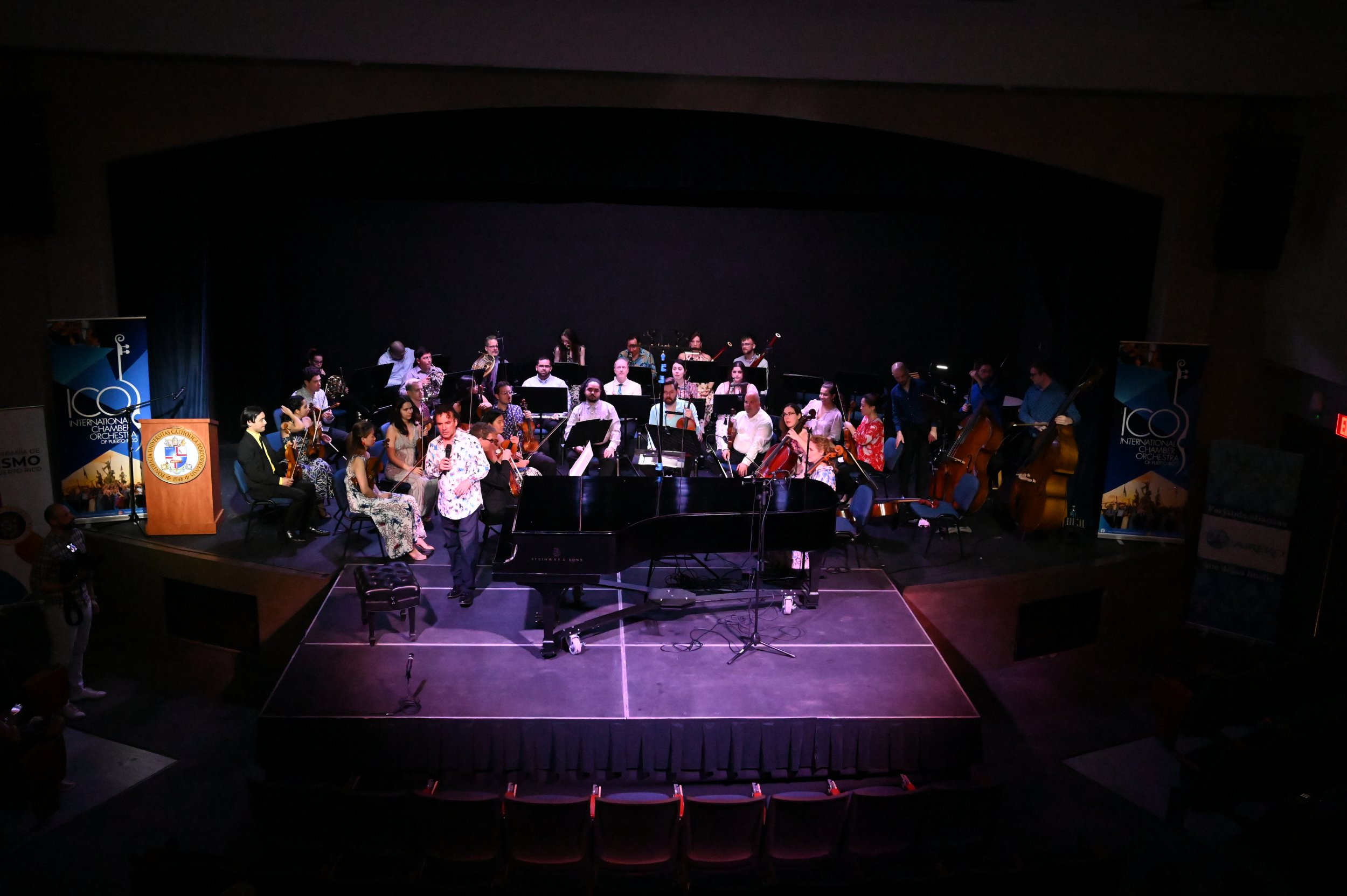 El teatro Mons. Vicente Murga de la Pontificia Universidad Católica de Puerto Rico se iluminó con un manjar de música clásica a cargo de la International Chamber Orchestra of Puerto Rico (ICOPR).  Como parte del noveno festival anual, la ICOPR reunió a sobre 40 artistas de 9 nacionalidades, incluyendo Puerto Rico, para su festival anual. La Pontificia Universidad Católica de Puerto Rico acogió a estos artistas, al igual que en los pasados años, en este magno evento con presentaciones en Ponce y Mayagüez.