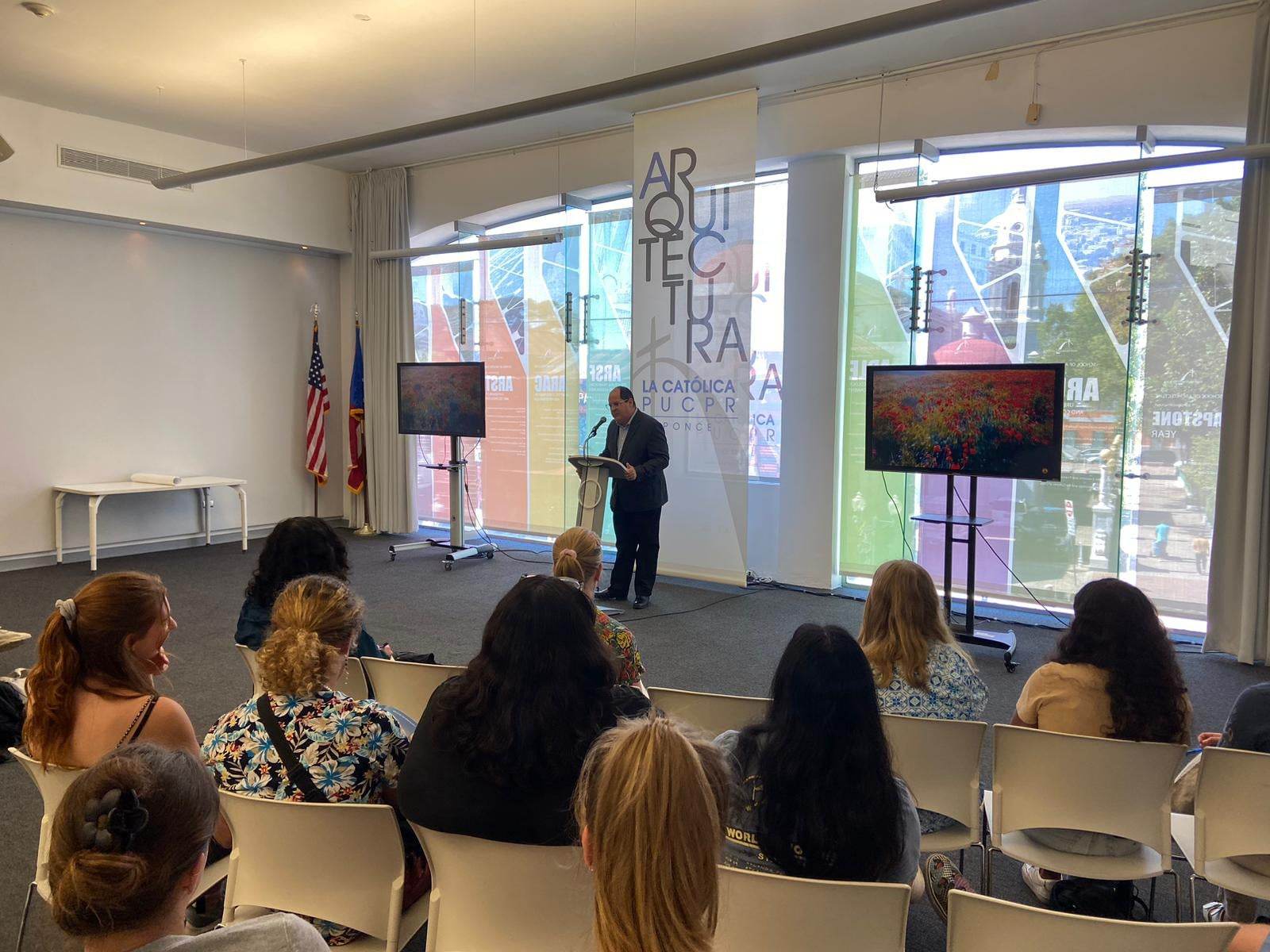 “St. Olaf College es una institución aliada a La Católica y nos visitó con el fin de realizar una experiencia académica dentro del curso Puerto Rico: su Política y su Ambiente. De esta forma La Católica le proveyó diferentes espacios académicos y culturales para que ellos profundizaran sobre la relación jurídica entre Puerto Rico y los Estados Unidos, la gastronomía puertorriqueña, la música. Esta experiencia es una de las tantas que ofrecemos a las universidades asociadas a La Católica, particularmente a las de Estados Unidos” explicó Joel Vélez, director de la Oficina Institucional de Relaciones Internacionales.