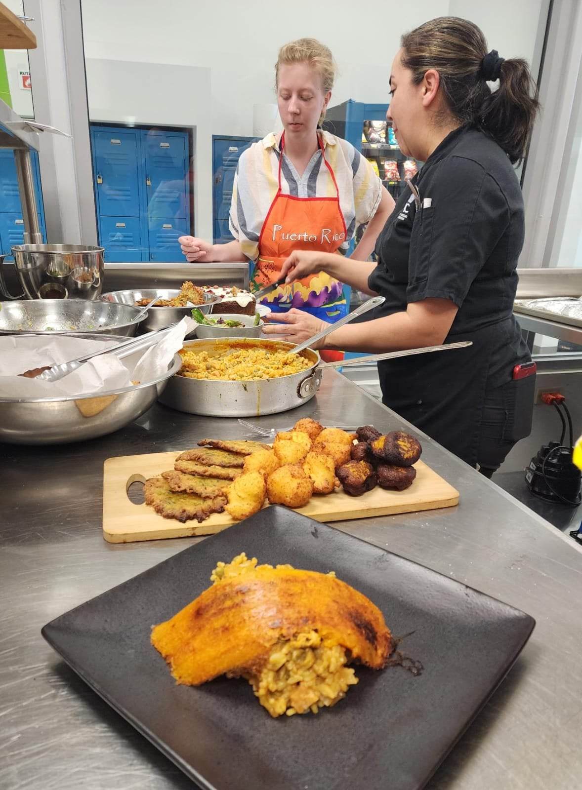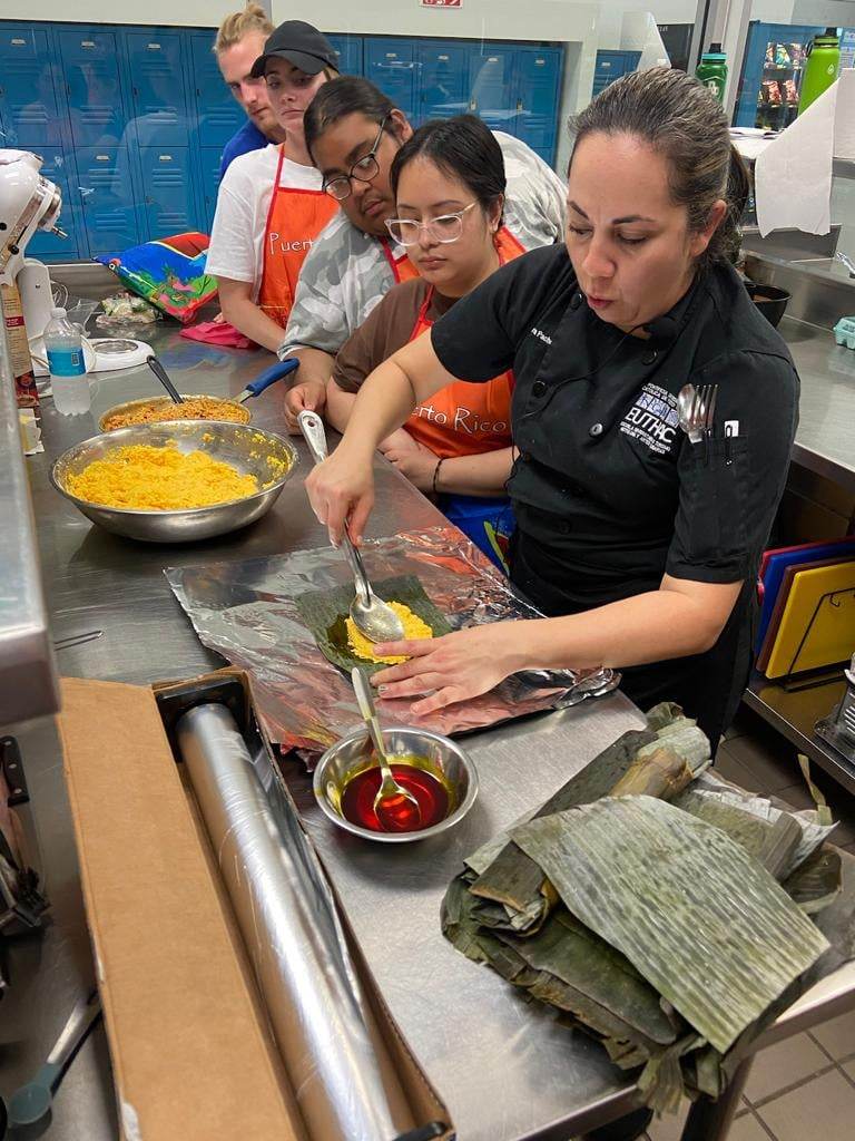 Dieciséis estudiantes de St. Olaf College en Minnesota viven de lleno la experiencia de la vida, la política, la cultura y el ambiente en la Isla. Durante un mes la delegación, que estuvo acompañada de la Dra. Kristina Medina Vilariño, profesora del curso Puerto Rico: su Política y su Ambiente, visitó La Católica como parte de la alianza entre ambas universidades. La Católica le brindó al grupo de estudiantes espacios de aprendizaje que incluyó visitas a la Escuela de Arquitectura y Diseño y al Centro de Enseñanza e Investigación Biotecnología y Agrobiotecnología. También tuvieron experiencias prácticas como el aprender a cocinar comida puertorriqueña a través de un taller ofrecido por la Prof.ª Yadira Pacheco, de la facultad de la Escuela Universitaria de Turismo, Hotelería y Artes Culinarias. Y por supuesto, conocieron la música que identifica la Isla y hasta tocaron los tambores y bailaron al ritmo de la bomba.