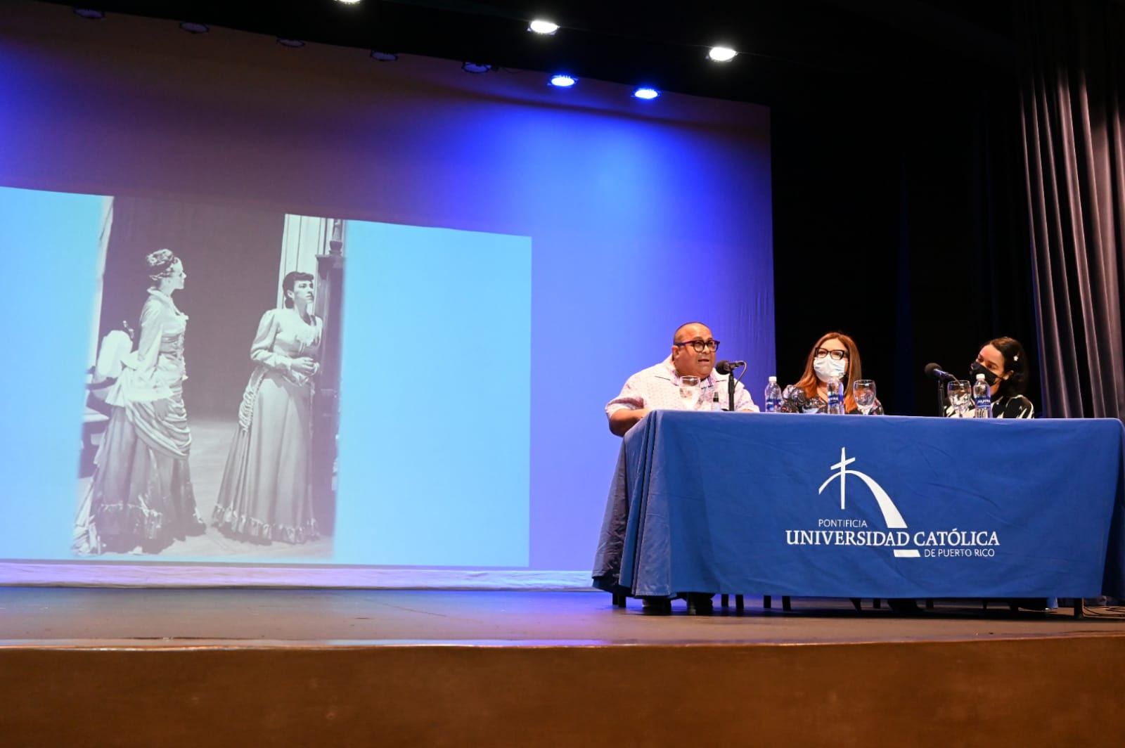 El conversatorio contó con la participación del Prof. José Adolfo Robledo González, director y documentalista del seminario multidisciplinario de información y documentación José Emilio González de la UPR, recinto de Río Piedras, de la Dra. Janis del Rosario Morales, profesora del Programa de Teatro y Artes Escénicas de la PUCPR, Prof.ª Elisa Martínez Rodríguez de la Escuela Especializada Ernesto Ramos Antonini en Yauco y Anamaris Santiago Santos, profesora del Programa de Teatro y Artes Escénicas de la PUCPR. “Todos los ponentes invitados fueron exalumnos de la maestra Victoria Espinosa” añadió Archevald.