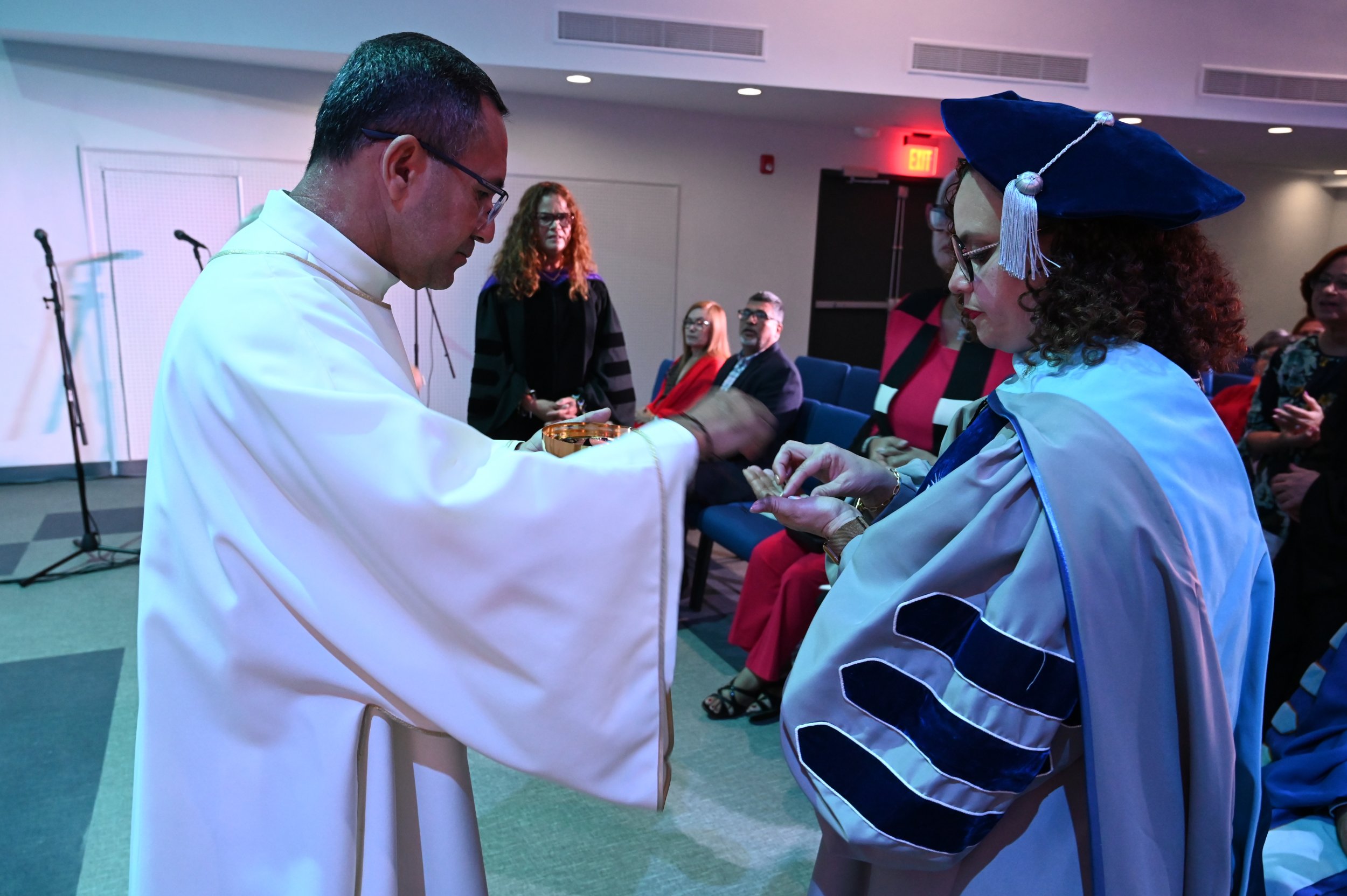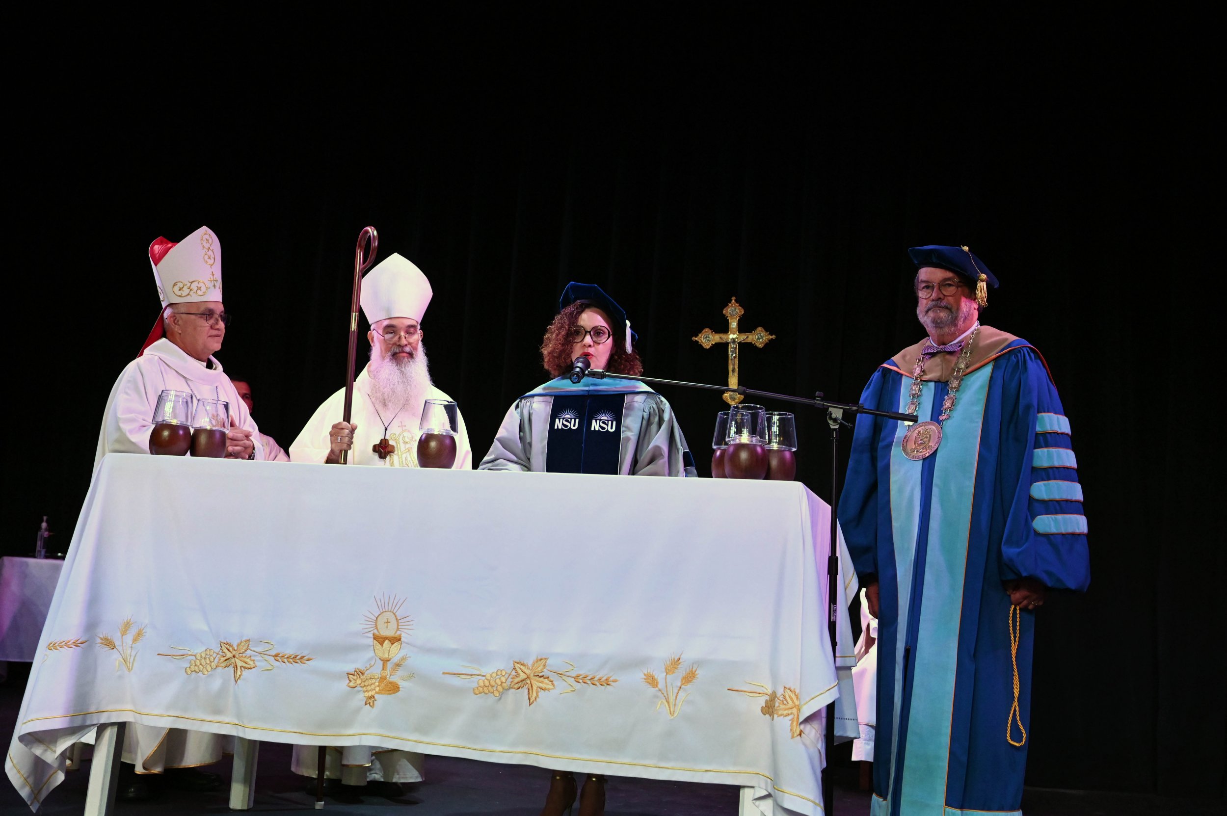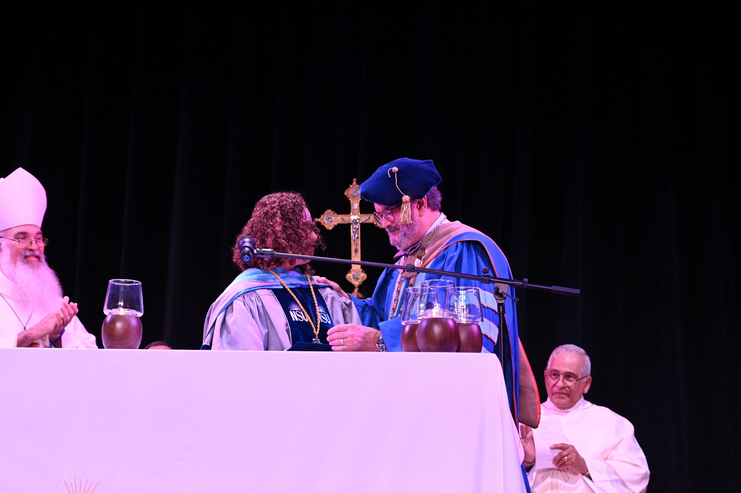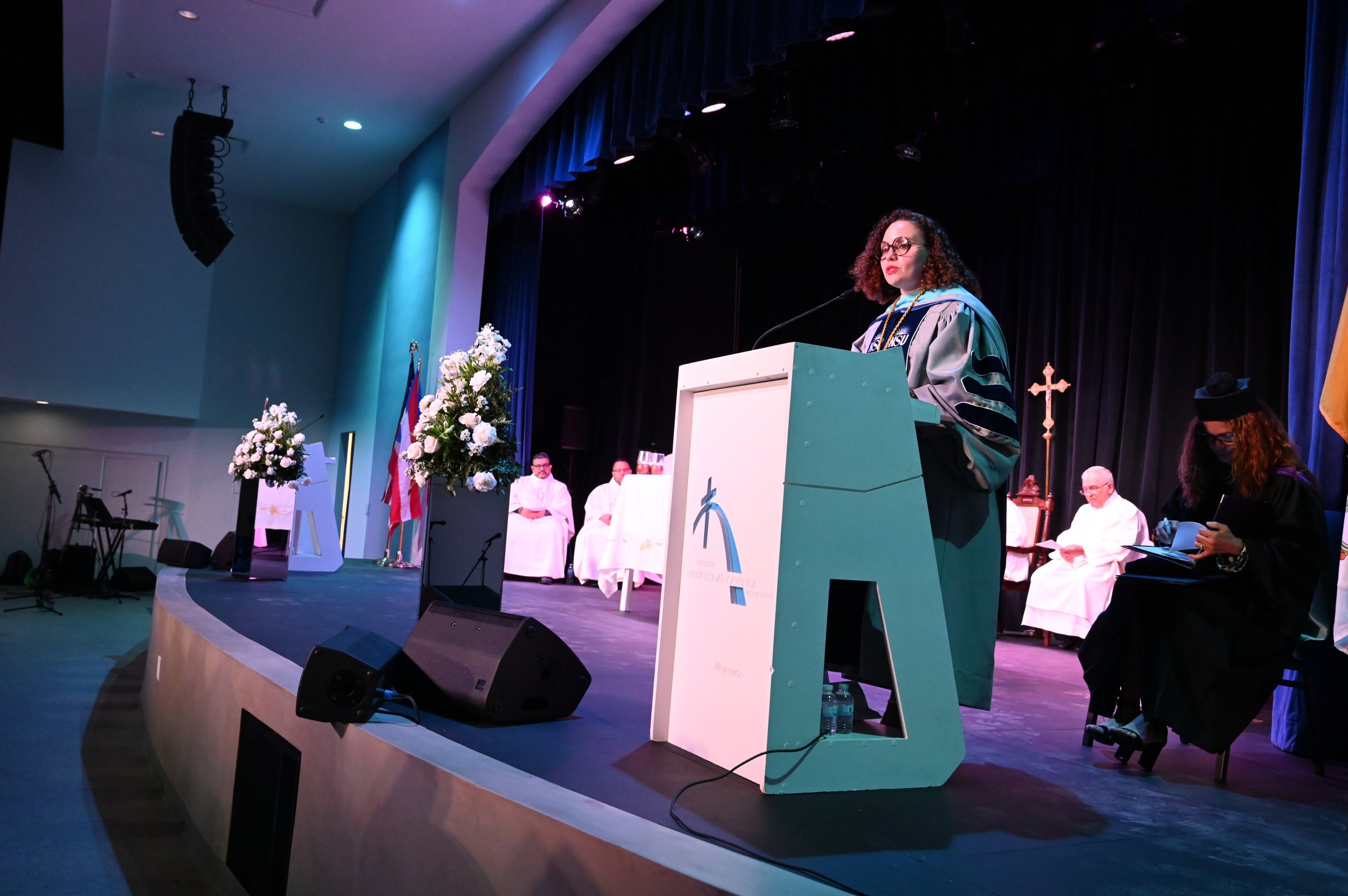 Por su parte, el presidente de la PUCPR, Dr. Jorge Iván Vélez Arocho sostuvo “Que ocurran transiciones en las instituciones es muy importantes, las transiciones son plataformas para mirar al futuro.Este campus y su rectora han hecho énfasis en dos elementos: en primer lugar, aumentar el reclutamiento de estudiantes y aumentar la tasa de retención y la tasa de graduación. Las tres métricas son métricas orientadas a los estudiantes. La rectora explicaba en su mensaje que en su plan está el acercamiento a estas comunidades de estudiantes, de tal manera que se encuentre en un campus inclusivo, un campus abierto y un campus que tenga el interés de hacer que cada uno de ellos tenga éxito en su vida”.