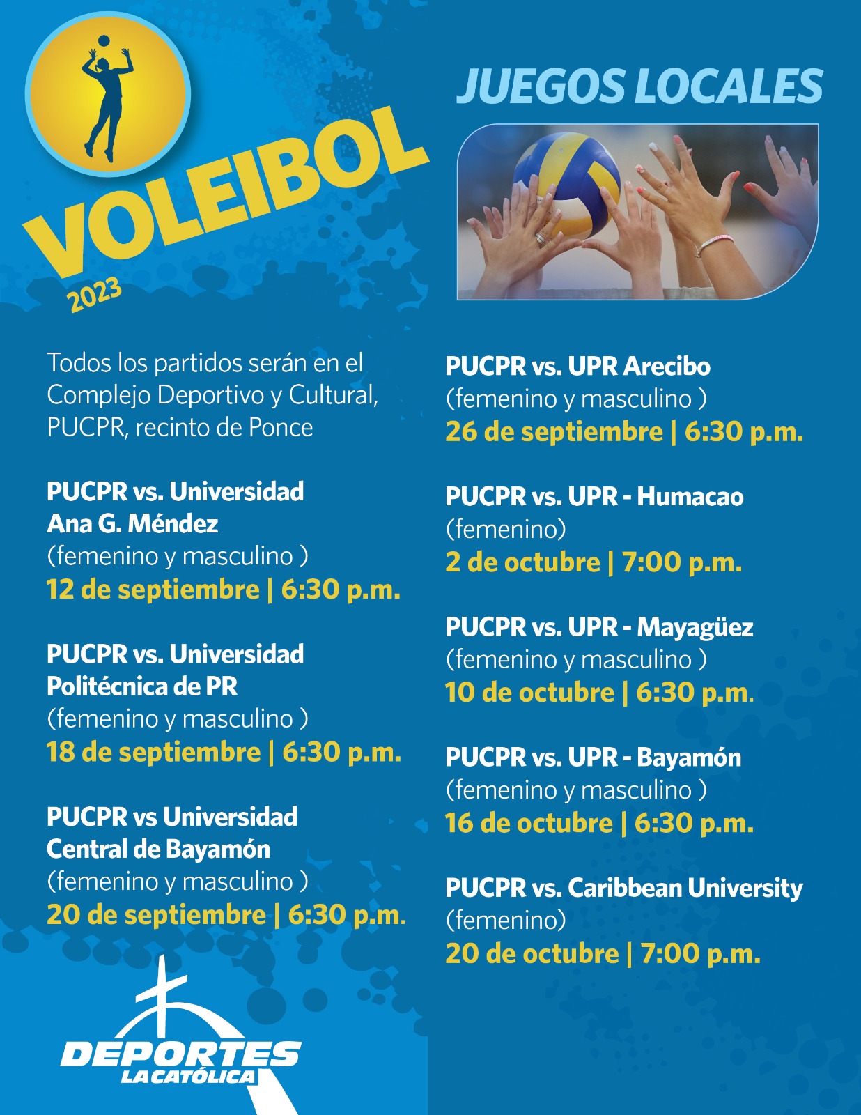 Guarda y comparte los calendarios de los eventos locales de voleibol, beisbol, tenis de campo y futbol