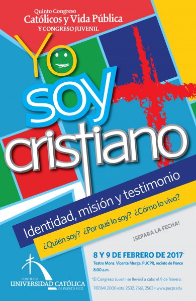 Bajo el tema Yo soy cristiano: identidad, misión y testimonio la Pontificia Universidad Católica de Puerto Rico celebrará el Quinto Congreso Católicos y Vida Pública los días 8 y 9 de febrero de 2017. Al igual que en los años anteriores, el Congreso reunirá a líderes católicos internacionales y locales, quienes presentarán sus alternativas y discutirán el rol de los cristianos en la actualidad.